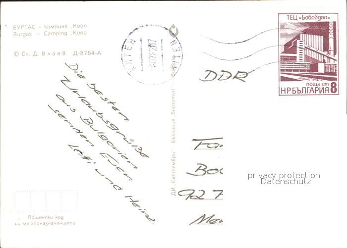 old postcard Burgas Camping Koop Strand postalisch gelaufen Erhaltung siehe scans