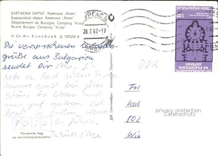 old postcard Burgas Camping Koop postalisch gelaufen Erhaltung siehe scans