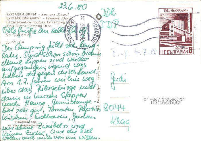 old postcard Burgas Camping Oase Strand postalisch gelaufen Erhaltung siehe scans