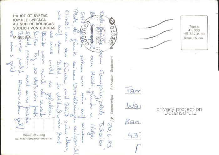 old postcard Burgas Campingplatz Strand postalisch gelaufen Erhaltung siehe scans