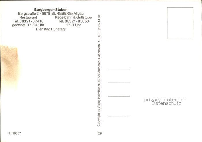 72496038 Burgberg Allgaeu Burgberger Stuben postalisch nicht gelaufen Erhaltung siehe scans KatCode: 11110009780118