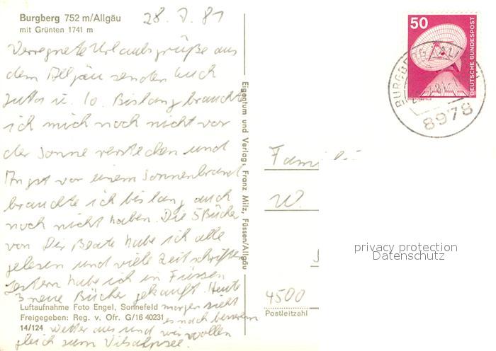73197010 alte Postkarte Burgberg Allgaeu Fliegeraufnahme Gruenten postalisch gelaufen Erhaltung siehe scans [KathaD81] KatCode: 11110009780118
