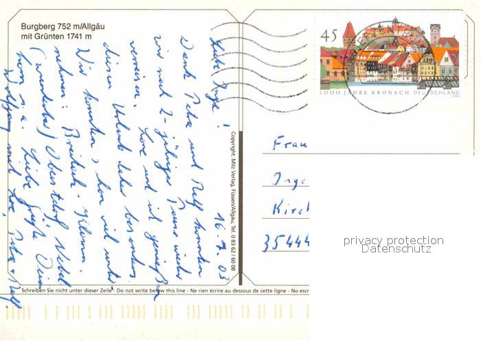 72790567 alte Postkarte Burgberg Allgaeu Fliegeraufnahme postalisch gelaufen Erhaltung siehe scans [LiesaD40] KatCode: 11110009780118