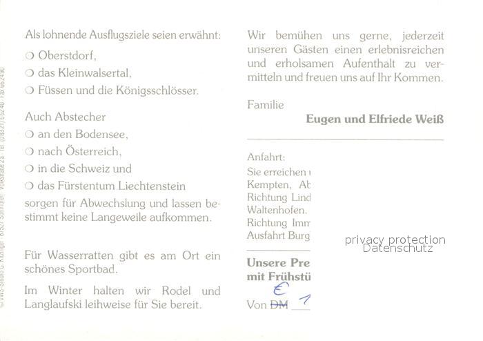 73738262 Burgberg Allgaeu Gaestehaus Weiss Gaststube Zimmer Bar postalisch nicht gelaufen Werbekarte (keine Postkarte) Erhaltung siehe scans [FriedD77] KatCode: 11110009780118