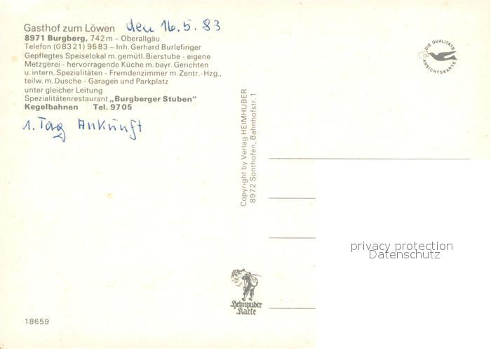 73651344 Burgberg Allgaeu Gasthof zum Loewen Allgaeuer Stube Festsaal postalisch nicht gelaufen Erhaltung siehe scans [WerneD78] KatCode: 11110009780118