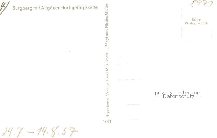 43352192 Burgberg Allgaeu mit Allgaeuer Hochgebirgskette postalisch nicht gelaufen Erhaltung siehe scans [WerneD78] KatCode: 11110009780118