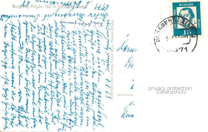43352186 alte Postkarte Burgberg Allgaeu mit Stuibenkette postalisch gelaufen Erhaltung siehe scans [WerneD78] KatCode: 11110009780118