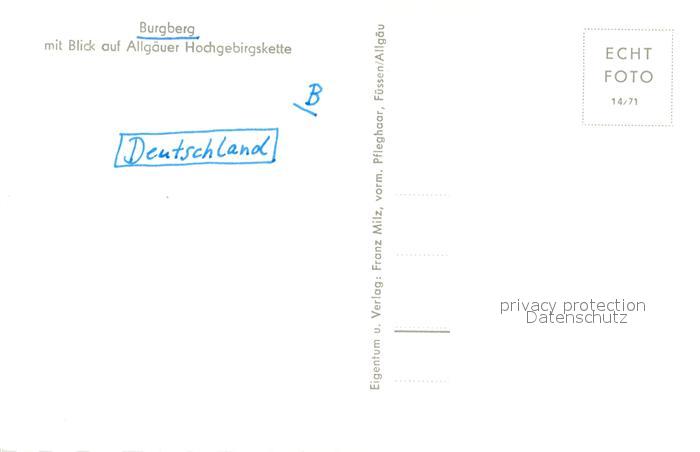 73671772 Burgberg Allgaeu Panorama Blick auf die Allgaeuer Hochgebirgskette postalisch nicht gelaufen Erhaltung siehe scans [FriedD77] KatCode: 11110009780118