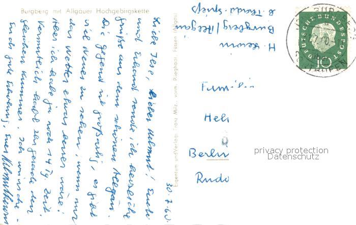 73671773 alte Postkarte Burgberg Allgaeu Panorama Blick auf die Allgaeuer Hochgebirgskette postalisch gelaufen Erhaltung siehe scans [FriedD77] KatCode: 11110009780118