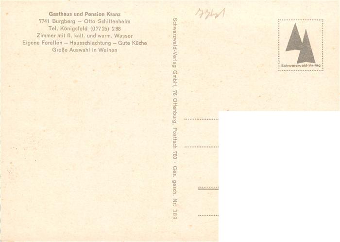 73937860 Burgberg Koenigsfeld Schwarzwald Gasthaus Pension Kreuz postalisch nicht gelaufen Erhaltung siehe scans [FriedD77] KatCode: 11110008326031