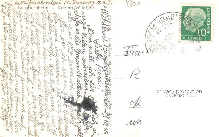 73832244 alte Postkarte Burgbernheim Kneipp Wildbad postalisch gelaufen Erhaltung siehe scans [FriedD77] KatCode: 11110009575115