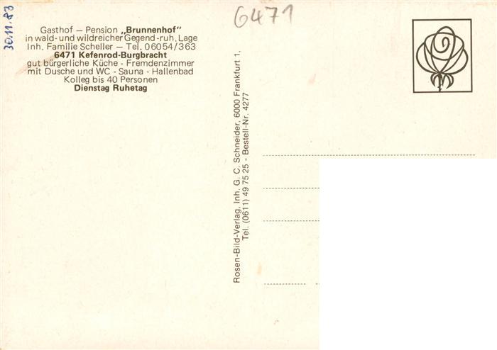 73893515 Burgbracht Gasthaus Pension Brunnenhof Gaststube Gaestezimmer Hallenbad postalisch nicht gelaufen Erhaltung siehe scans [WerneD78] KatCode: 11110006440013