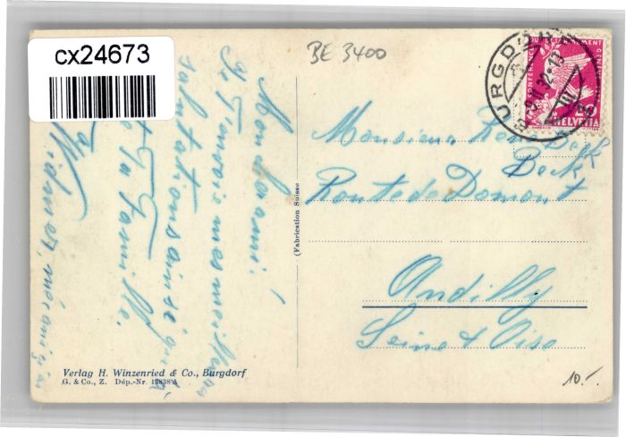 10752905 alte Postkarte Burgdorf BE Burgdorf Krankenhaus postalisch gelaufen KatCode: 11470060150004