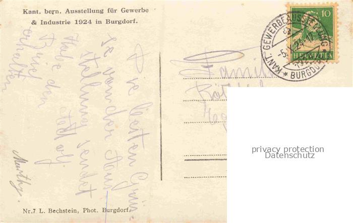 34146153 alte Postkarte BURGDORF BE Kant. bern. Ausstellung fuer Gewerbe und Industrie postalisch gelaufen Erhaltung siehe scans [FriedD77] KatCode: 11470060150004
