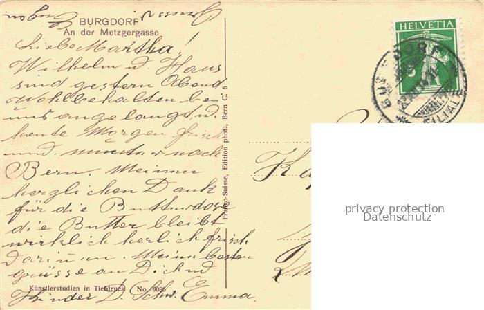 34146147 alte Postkarte BURGDORF BE Partie an der Metzgergasse Blick zur Kirche postalisch gelaufen Erhaltung siehe scans [FriedD77] KatCode: 11470060150004