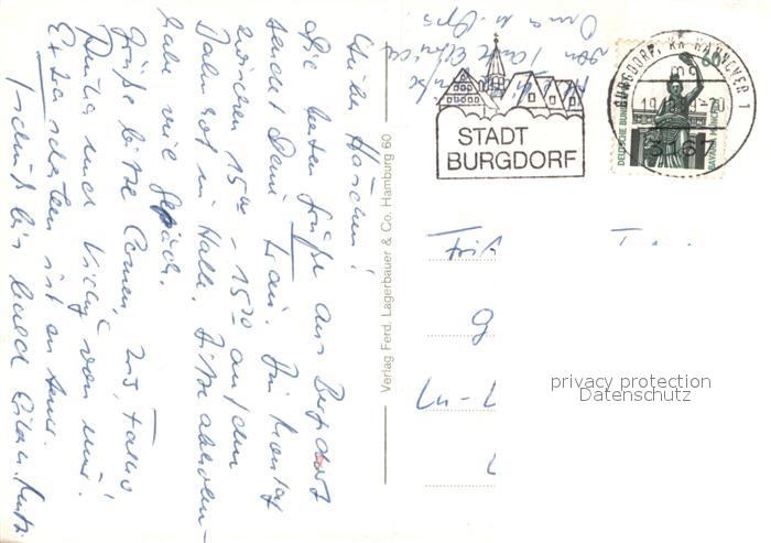 73671191 alte Postkarte Burgdorf Hannover Kirche Rathaus Fachwerkhaeuser Marktstrasse Suedstadt Hochhaeuser postalisch gelaufen Erhaltung siehe scans [FriedD77] KatCode: 11110003241003