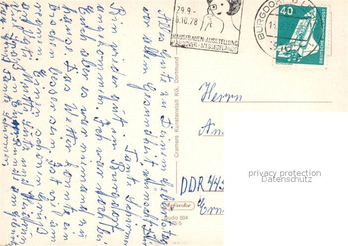 73671187 alte Postkarte Burgdorf Hannover Kirche Schwimmbad Rathaus Marktstrasse Fachwerkhaeuser Suedstadt Hochhaus postalisch gelaufen Erhaltung siehe scans [FriedD77] KatCode: 11110003241003
