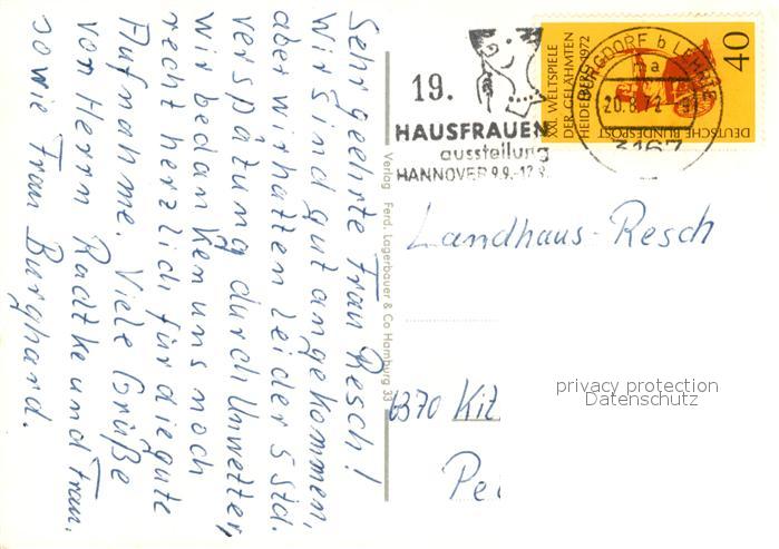 73157226 alte Postkarte Burgdorf Hannover Schule Stadtpark Verwaltungsgebaeude Marktstrasse Bahnhof Schwimmbad Kirche postalisch gelaufen Erhaltung siehe scans [FriedD77] KatCode: 11110003241003
