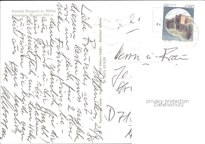 old postcard Burgeis Vinschgau Fliegeraufnahme Wegekreuz postalisch gelaufen Erhaltung siehe scans