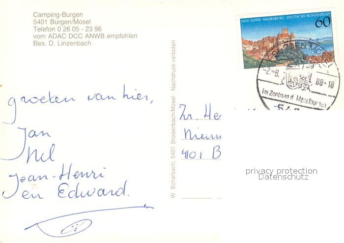 73680371 alte Postkarte Burgen Mosel Campingplatz an der Mosel postalisch gelaufen Erhaltung siehe scans [FriedD77] KatCode: 11110007137206
