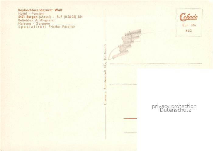 72944026 Burgen Mosel Fliegeraufnahme Baybachforellenzucht Wolf Hotel Pension postalisch nicht gelaufen Erhaltung siehe scans [KathaD81] KatCode: 11110007137206