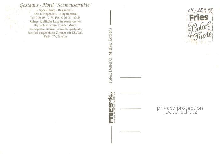 73650391 Burgen Mosel Gasthaus Hotel Schmausemuehle Bar Gastraeume Terrasse postalisch nicht gelaufen Erhaltung siehe scans [WerneD78] KatCode: 11110007137206