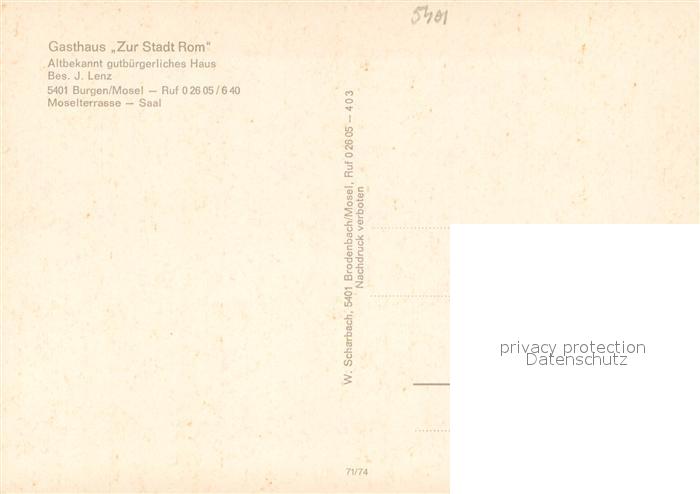 73641136 Burgen Mosel Gasthaus zur Stadt Rom Gastraeume Panorama postalisch nicht gelaufen Erhaltung siehe scans [WerneD78] KatCode: 11110007137206