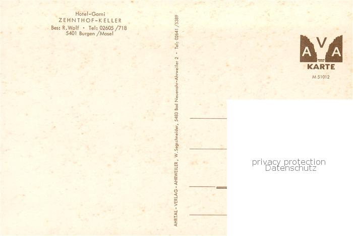 73844728 Burgen Mosel Hotel garni Zehnthof Keller Gastraeume Garten postalisch nicht gelaufen Erhaltung siehe scans [WerneD78] KatCode: 11110007137206