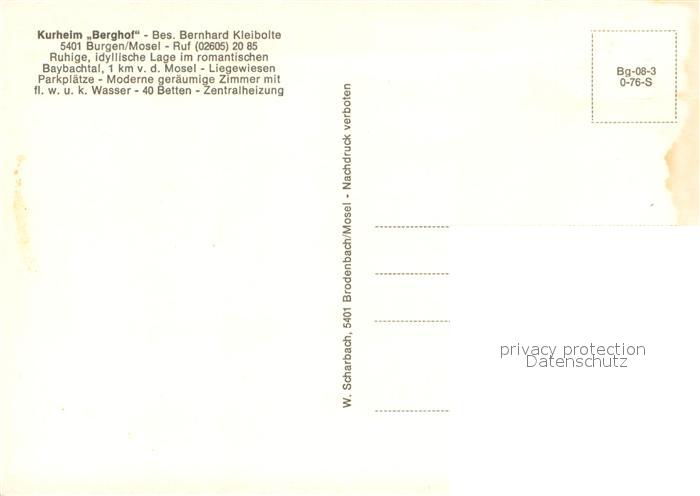 73641137 Burgen Mosel Kurheim Berghof postalisch nicht gelaufen Erhaltung siehe scans [WerneD78] KatCode: 11110007137206