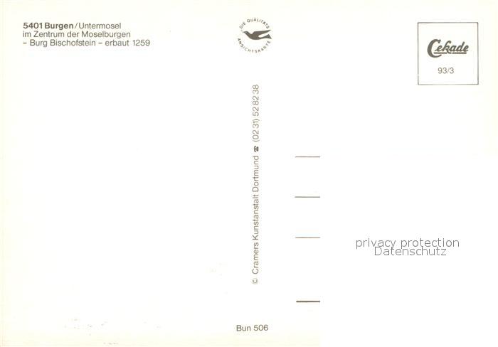 73673166 Burgen Mosel Panorama mit Burg Bischofstein 13. Jhdt. postalisch nicht gelaufen Erhaltung siehe scans [FriedD77] KatCode: 11110007137206