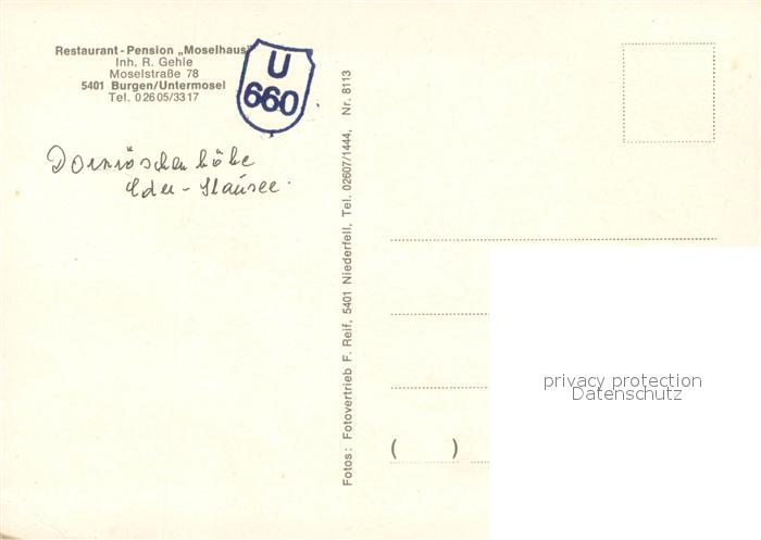 73641139 Burgen Mosel Restaurant Pension Moselhaus Gaststube Burgblick Edersee postalisch nicht gelaufen Erhaltung siehe scans [WerneD78] KatCode: 11110007137206