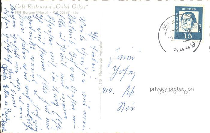 72197960 alte Postkarte Burgen Mosel Total Strassenpartie Fliegeraufnahme Burg Bischofstein Baybachtal Ruine Waldeck postalisch gelaufen Erhaltung siehe scans KatCode: 11110007137206