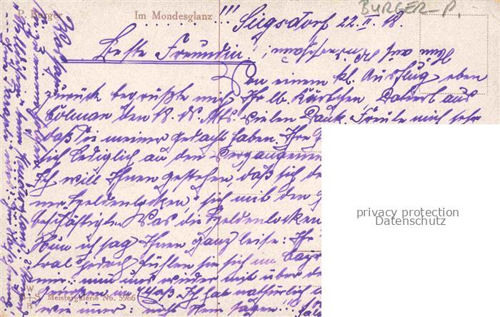 74020805 alte Postkarte Burger P. Kuenstlerkarte Im Mondesglanz postalisch gelaufen Erhaltung siehe scans [IrynaD87] KatCode: 22240000003200