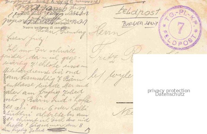 74074799 alte Postkarte BURGER Willy F. Kuenstlerkarte Feldpost Pferd Schweiz postalisch gelaufen Erhaltung siehe scans [SanaeD93] KatCode: 22240000003200
