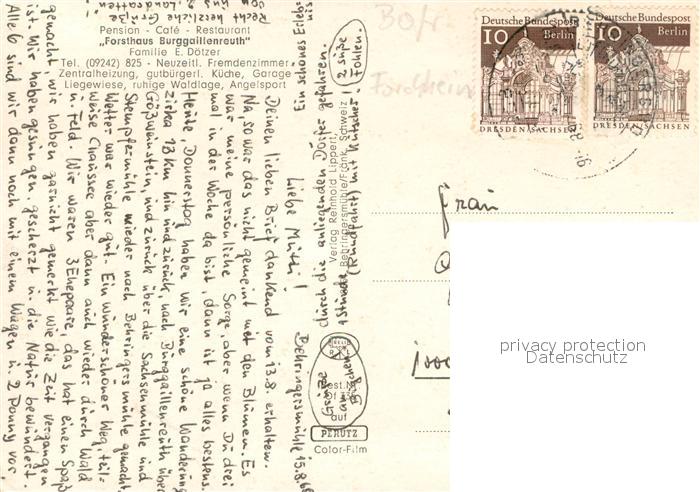 73648271 alte Postkarte Burggaillenreuth Oberfranken Restaurant Forsthaus Burggaillenreuth Burg Weisenttal Lokal postalisch gelaufen Erhaltung siehe scans [WerneD78] KatCode: 11110009474121