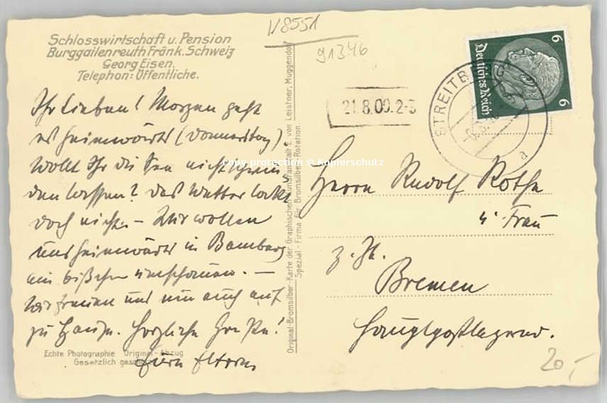 Burggaillenreuth Oberfranken Schloss-Restaurant x 1936
