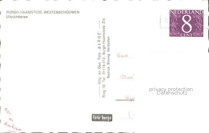 alte Postkarte Burgh Haamstede Uitzichttoren Aussichtsturm postalisch gelaufen Erhaltung siehe scans