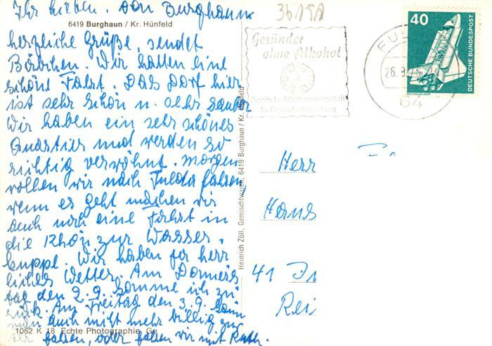 73890419 alte Postkarte Burghaun Fliegeraufnahme postalisch gelaufen Erhaltung siehe scans [FriedD77] KatCode: 11110006631002