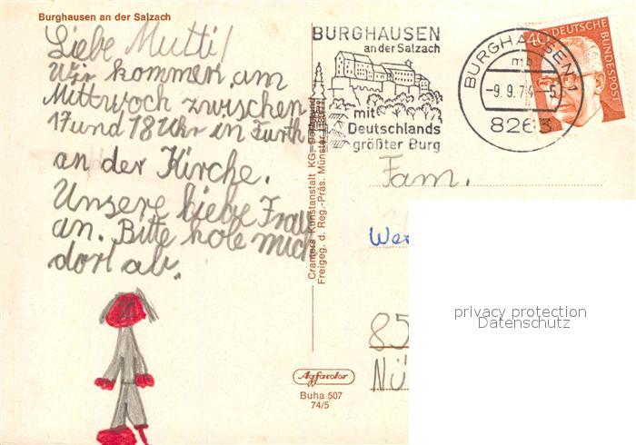 72934070 alte Postkarte Burghausen Salzach Fliegeraufnahme postalisch gelaufen Erhaltung siehe scans [LiesaD40] KatCode: 11110009171112