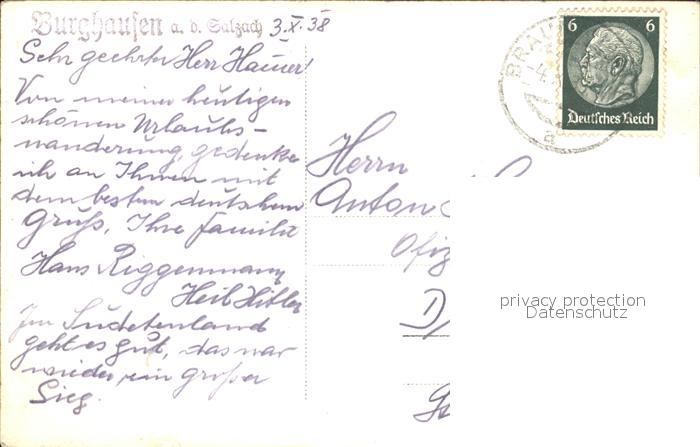 41995603 alte Postkarte Burghausen Salzach Fliegeraufnahme postalisch gelaufen Erhaltung siehe scans KatCode: 11110009171112