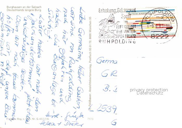 72775448 alte Postkarte Burghausen Salzach Fliegeraufnahme postalisch gelaufen Erhaltung siehe scans [NatalD47] KatCode: 11110009171112