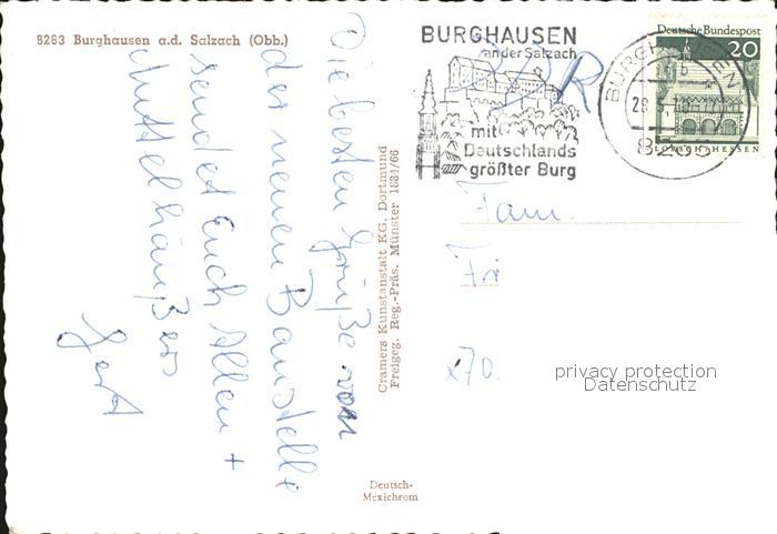 72567064 alte Postkarte Burghausen Salzach Fliegeraufnahme postalisch gelaufen Erhaltung siehe scans [LiesaD40] KatCode: 11110009171112
