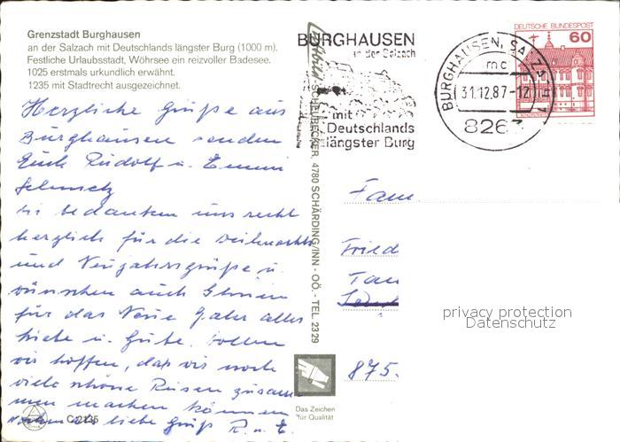 72392416 alte Postkarte Burghausen Salzach Fliegeraufnahme postalisch gelaufen Erhaltung siehe scans KatCode: 11110009171112