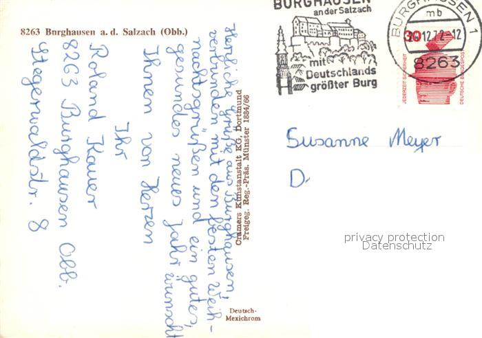 73030479 alte Postkarte Burghausen Salzach Fliegeraufnahme postalisch gelaufen Erhaltung siehe scans [KathaD81] KatCode: 11110009171112