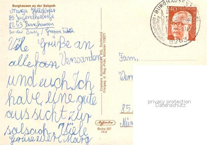 72934072 alte Postkarte Burghausen Salzach Fliegeraufnahme Flusspartie postalisch gelaufen Erhaltung siehe scans [LiesaD40] KatCode: 11110009171112