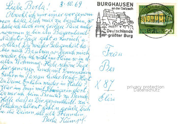 73096728 alte Postkarte Burghausen Salzach Grenzstadt Deutschlands laengste Burg postalisch gelaufen Erhaltung siehe scans [LiesaD40] KatCode: 11110009171112