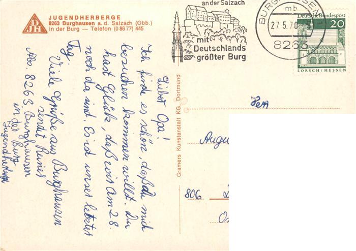 73878506 alte Postkarte Burghausen Salzach Oberbayern Jugendherberge Burghausen Schloss Restaurant Fliegeraufnahme postalisch gelaufen Erhaltung siehe scans [WerneD78] KatCode: 11110009171112
