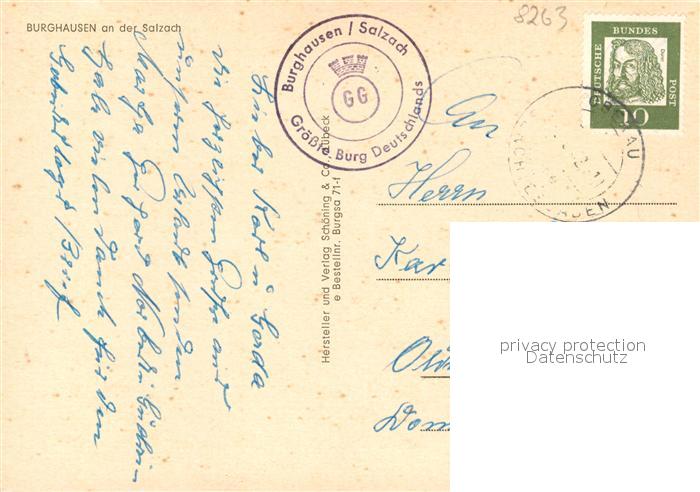 73043571 alte Postkarte Burghausen Salzach Panorama postalisch gelaufen Erhaltung siehe scans [FriedD77] KatCode: 11110009171112