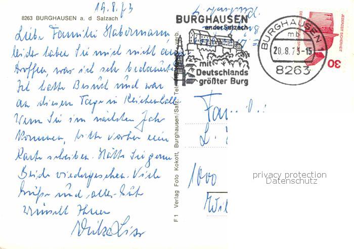 72747118 alte Postkarte Burghausen Salzach Stadtbild mit Burg postalisch gelaufen Erhaltung siehe scans [FriedD77] KatCode: 11110009171112