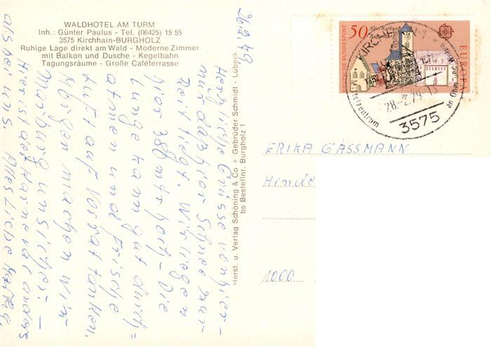 73902938 alte Postkarte Burgholz Kirchhain Waldhotel am Turm Fliegeraufnahme postalisch gelaufen Erhaltung siehe scans [WerneD78] KatCode: 11110006534011